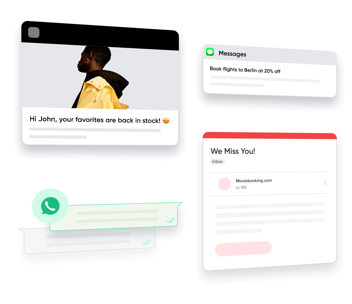 Use SMS to engage users offline with personalized and actionable messages. Personalize your SMS with user data to provide exceptional brand experience.